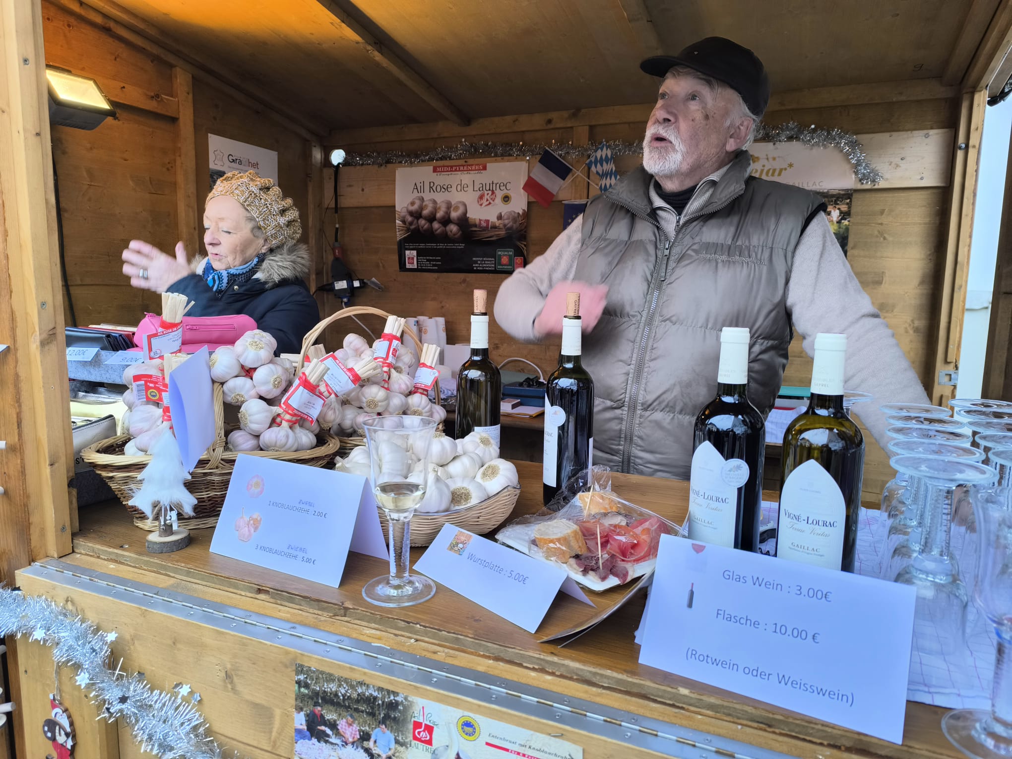 Le lendemain, c’est sur le marché de Noël que notre délégation a installé son stand afin de proposer des produits locaux aux habitants de Prien. Il faisait plutôt froid mais la soupe à l’ail a permis à nos représentants d’avoir chaud, de même que le Glühwein proposé sur le stand voisin.