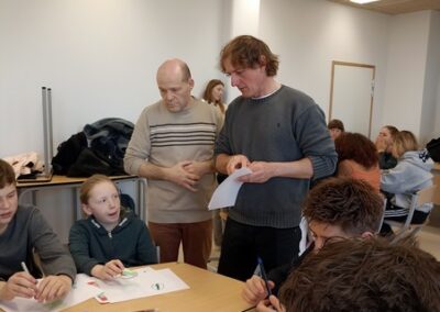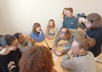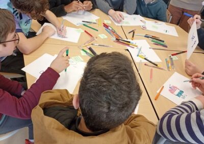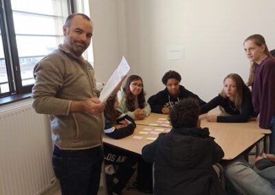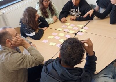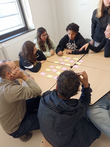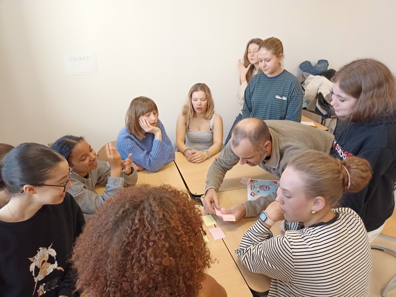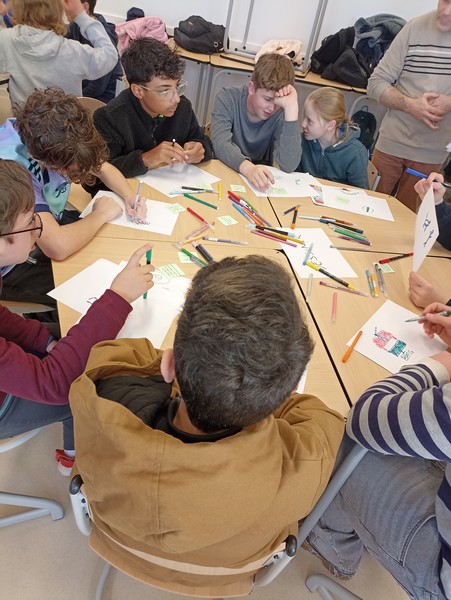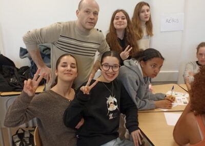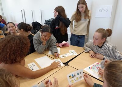 Le mardi, les élèves Français et Allemands ont pu jouer le match retour de la compétition organisée lors du séjour en Bavière en novembre dernier … je veux parler du jeu sur les expressions idiomatiques mais il était cette fois-ci consacré aux expressions françaises (avoir un chat dans la gorge, mettre la charrue avant les boeufs, couper les cheveux en quatre, …) 😄